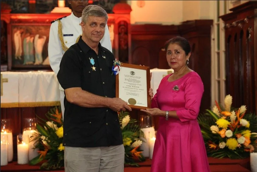 Paul Walker receives the Meritorious Service Award from Belize’s Governor General, Dame Froyla Tzalam